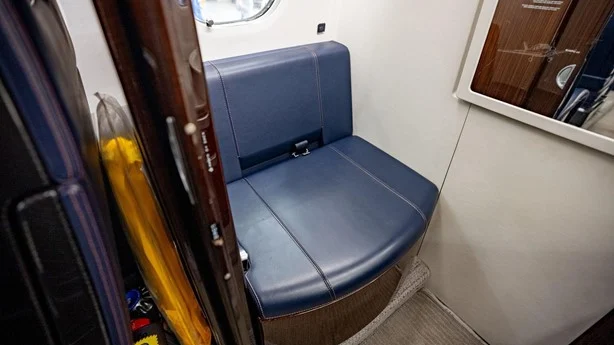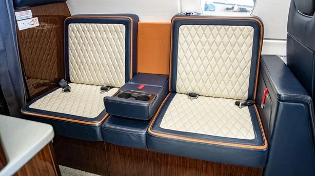 Blue & White Seats with Orange Accents Carbon Fibre Seat Side Panels Ebony Cabinetry