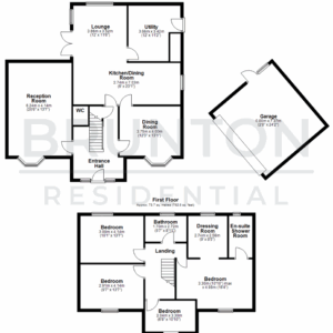 The ground floor features a spacious reception room, a large dining room, an open plan kitchen/dining area, a well-proportioned lounge, a useful utility room, and a convenient downstairs WC. The upper floor hosts four well-proportioned bedrooms, with the master benefiting from a private dressing room and an en-suite shower room. A four-piece family bathroom serves the remaining rooms. The property further benefits from lovely mature gardens, off-street parking, and a double garage.